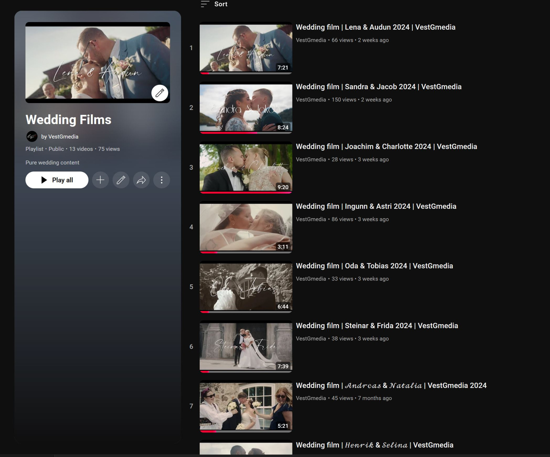 oversikten over alle bryllups filmene som blir lastet opp etterhvert :)